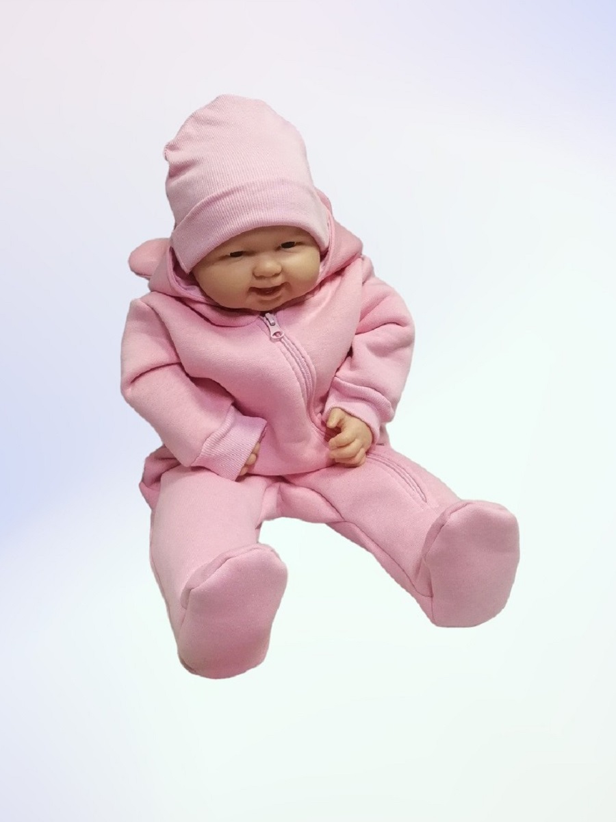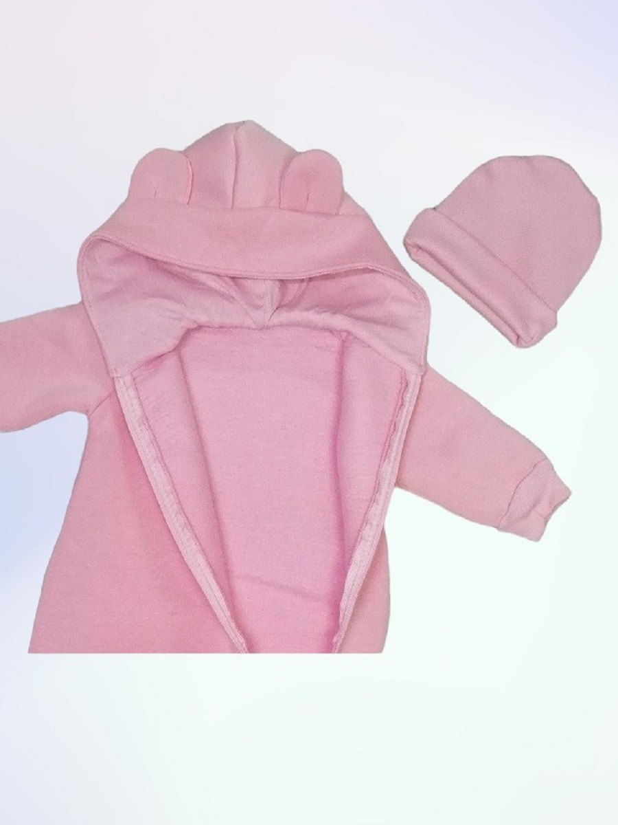 "МоёДитё" комбинезон выполнен из футера с начёсом. Комбинезон с капюшоном на подкладке и декорирован сверху ушками, с закрытыми ножками, рукава на манжетах, спереди косая молния до конца одной ножки. Шапочка из кашкорсе можно одевать как с отворотом, так и без. Очень хорошо тянется.
